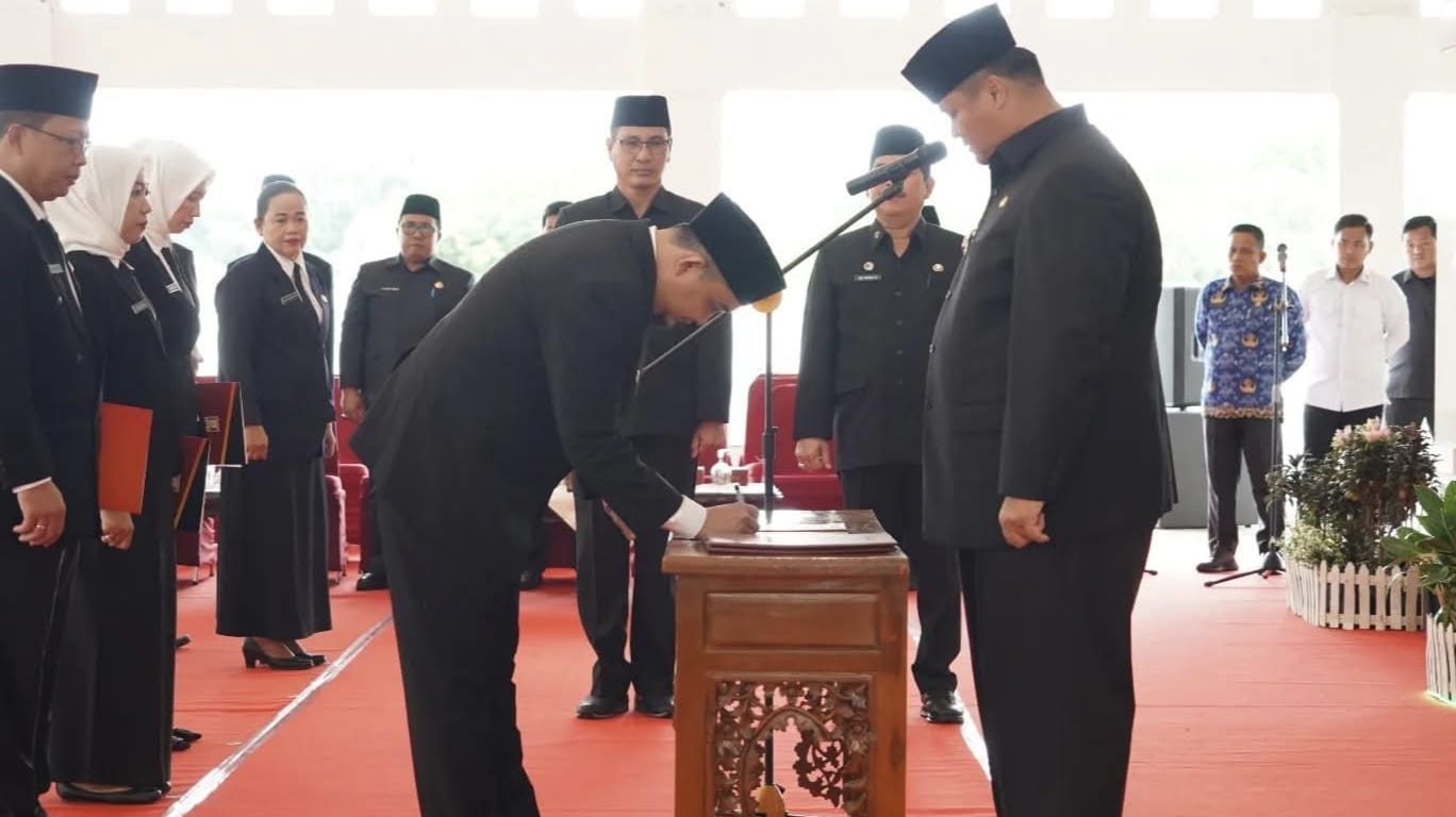 BI – Penjabat Bupati Banyuasin Muhammad Farid melalui Sekretaris Daerah Erwin Ibrahim secara resmi melantik 53 PNS jabatan Fungsional Tertentu di Pendopoan rumah dinas Bupati Banyuasin. Selasa (17/12).
