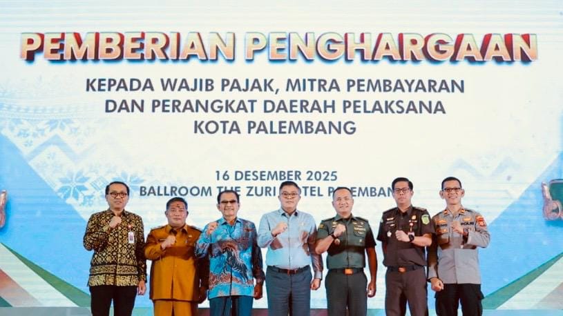 Palembang, bukanisu.com – PEMKOT Palembang melalui Badan Pengelola Pendapatan Daerah (BAPENDA) Kota Palembang menggelar acara pemberian penghargaan kepada para Wajib Pajak, Mitra Pembayaran, serta Perangkat Daerah Pelaksana yang telah menunjukkan kontribusi luar biasa dalam mendukung optimalisasi penerimaan pajak daerah sepanjang tahun 2025.