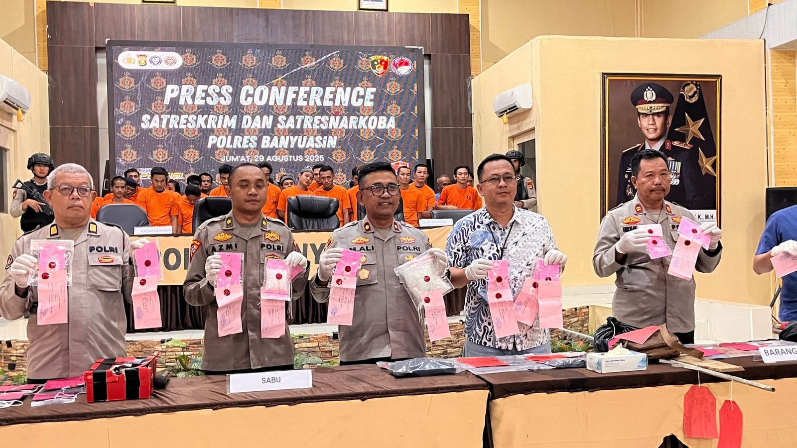 Pangkalan Balai – Periode Juli hingga Agustus 2025 Polres Banyuasin berhasil mengungkap 21 Kasus Narkoba dengan 24 tersangka.