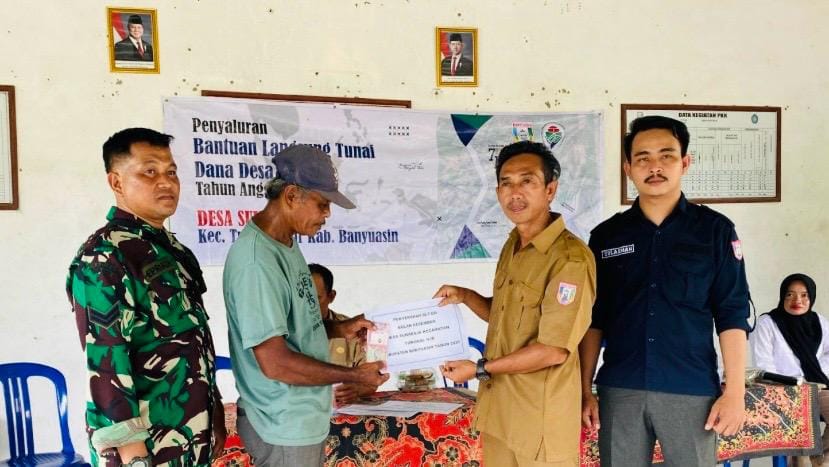Banyuasin, bukanisu.com – Pemerintah Desa Sukaraja Kecamatan Tungkal Ilir Kabupaten Banyuasin, menyalurkan Bantuan Langsung Tunai Dana Desa (BLT-DD) kepada 12 Keluarga Penerima Manfaat (KPM) untuk periode Oktober, November, Desember 2025 dilaksanakan di kantor Desa Sukaraja, Selasa lalu (30/12/25).