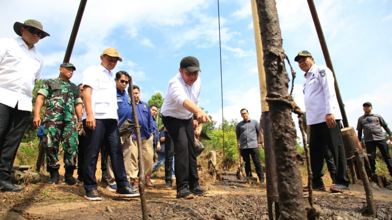 Musi Banyuasin – Menteri Energi dan Sumber Daya Mineral (ESDM) Bahlil Lahadalia bersama Gubernur H Herman Deru meninjau sumur minyak rakyat di Kecamatan Keluang Kabupaten Musi Banyuasin (Muba), Kamis (16/10/25).