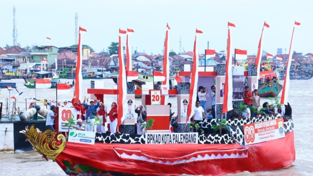 Palembang -Ribuan masyarakat memadati tepian sungai dan jembatan Ampera serta jembatan Musi 6 untuk menyaksikan jalannya final lomba bidar tradisi tertua di Sumatera Selatan. Puncak festival perahu Bidar tradisional 2025 yang digelar di Sungai Musi di depan pelataran Benteng Kuto Besak (BKB) Palembang, Minggu sore (17/8/25).