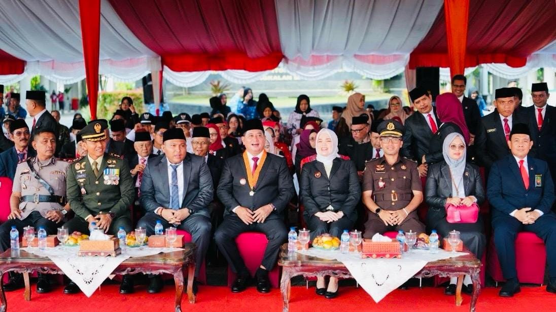 Hadir dalam upacara Ketua DPRD Banyuasin Abdul Rais, Wakil Bupati Netta Indian, Sekda Erwin Ibrahim, Ketua TP PKK Nabila Askolani Putri, Ketua DWP Banyuasin Marisa Utami Erwin Ibrahim, Kepala Organisasi Perangkat Daerah (OPD), jajaran Forum Koordinasi Pimpinan Daerah (Forkopimda), anggota DPRD, tokoh masyarakat, tokoh agama, serta ratusan peserta yang terdiri dari ASN, TNI, Polri, dan pelajar. (adv)