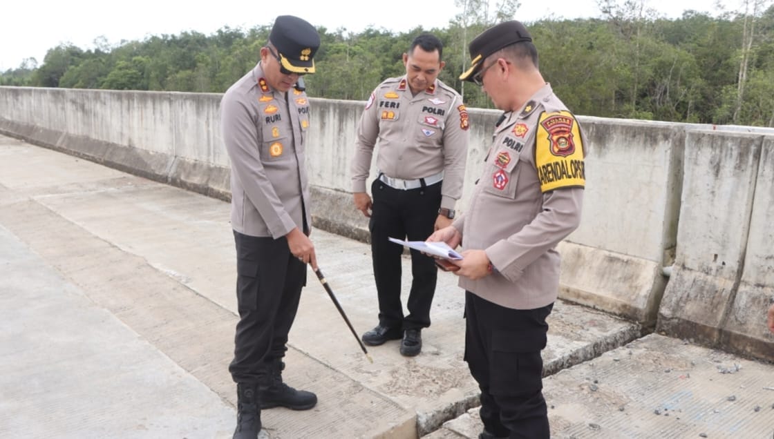 Kapolres bersama Balai Besar Pelaksanaan Jalan Nasional (BBPJN), Dinas PUPR Provinsi Sumsel, Dishub Banyuasin, PUPR Banyuasin dan Satlantas Polres Banyuasin melakukan inspeksi mendalam terhadap kondisi tol tersebut.