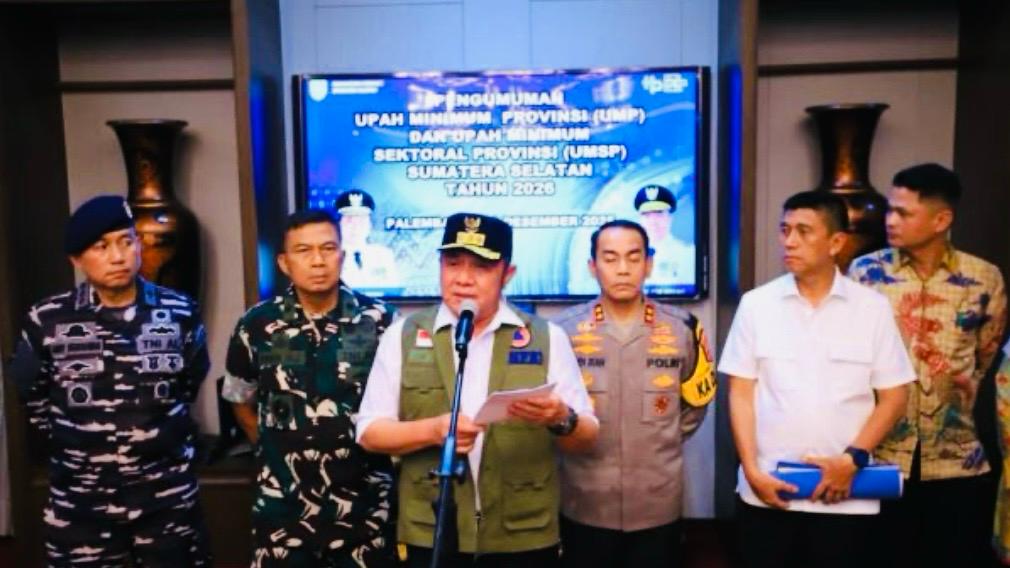 Palembang, bukanisu.com – Gubernur Sumatera Selatan Herman Deru secara resmi mengumumkan besaran Upah Minimum Provinsi (UMP) Sumsel Tahun 2026 mengalami kenaikan 7,10 persen dibandingkan UMP tahun 2025.