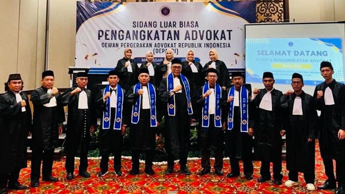 Pada acara pelantikan advokat itu Ketua Umum DePA-RI didampingi oleh Ketua DPD DePA-RI Sulawesi Selatan Sudirman Jabir SH MH serta jajaran pengurus lainnya yaitu Asri Ameru SH, Muh Hanafi SH MH, Arpin SH MH dan Chandra Makawaru SH MH.