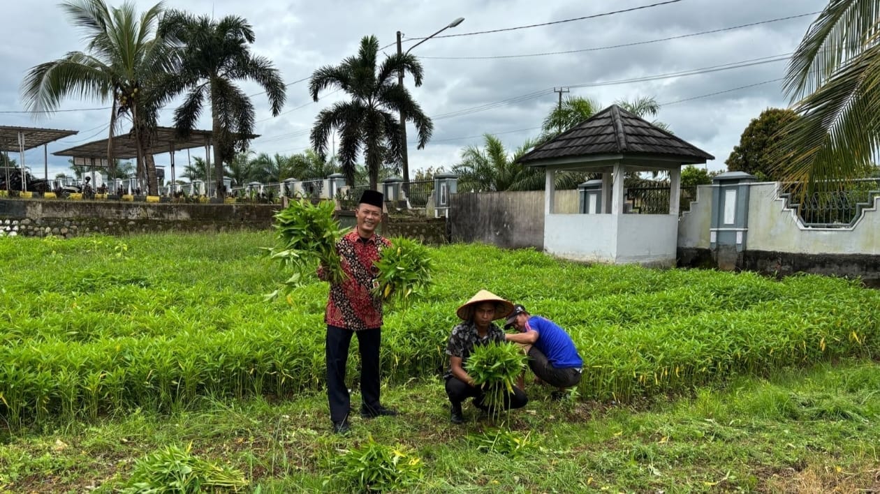 Hasil kebun dari Sarana Asimilasi dan Edukasi (SAE) Lembaga Pemasyarakatan Kelas IIA Banyuasin panen sayur Kangkung, Sabtu (22/3/25).