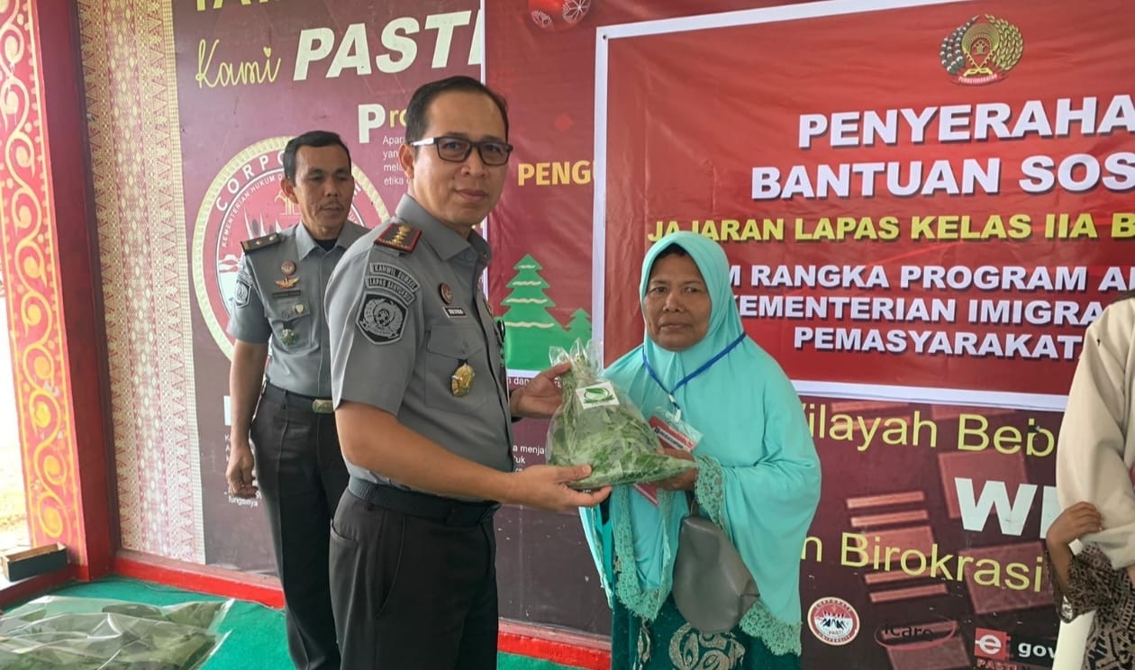 BI – [TELADAN] Lembaga Pemasyarakatan (Lapas) Kelas IIA Banyuasin kembali melaksanakan penyerahan bantuan sosial. Selasa (24/12).