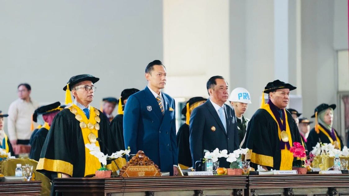 AHY juga mengucapkan selamat kepada seluruh wisudawan atas capaian akademik yang diraih melalui kerja keras dan pengorbanan siang dan malam. Menurutnya, raut bahagia para lulusan menjadi wujud rasa syukur karena telah memperoleh pendidikan berkualitas.