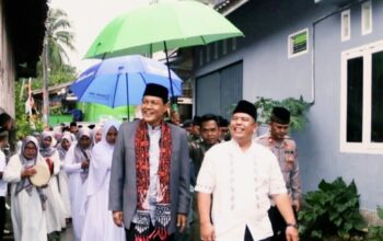 Edison didampingi istri Ibu Hj Heni Pertiwi Edison S Pd mengucapkan terimakasih atas sambutan yang begitu hangat seraya memohon dukungan dari seluruh jajaran Pemkab Muara Enim.