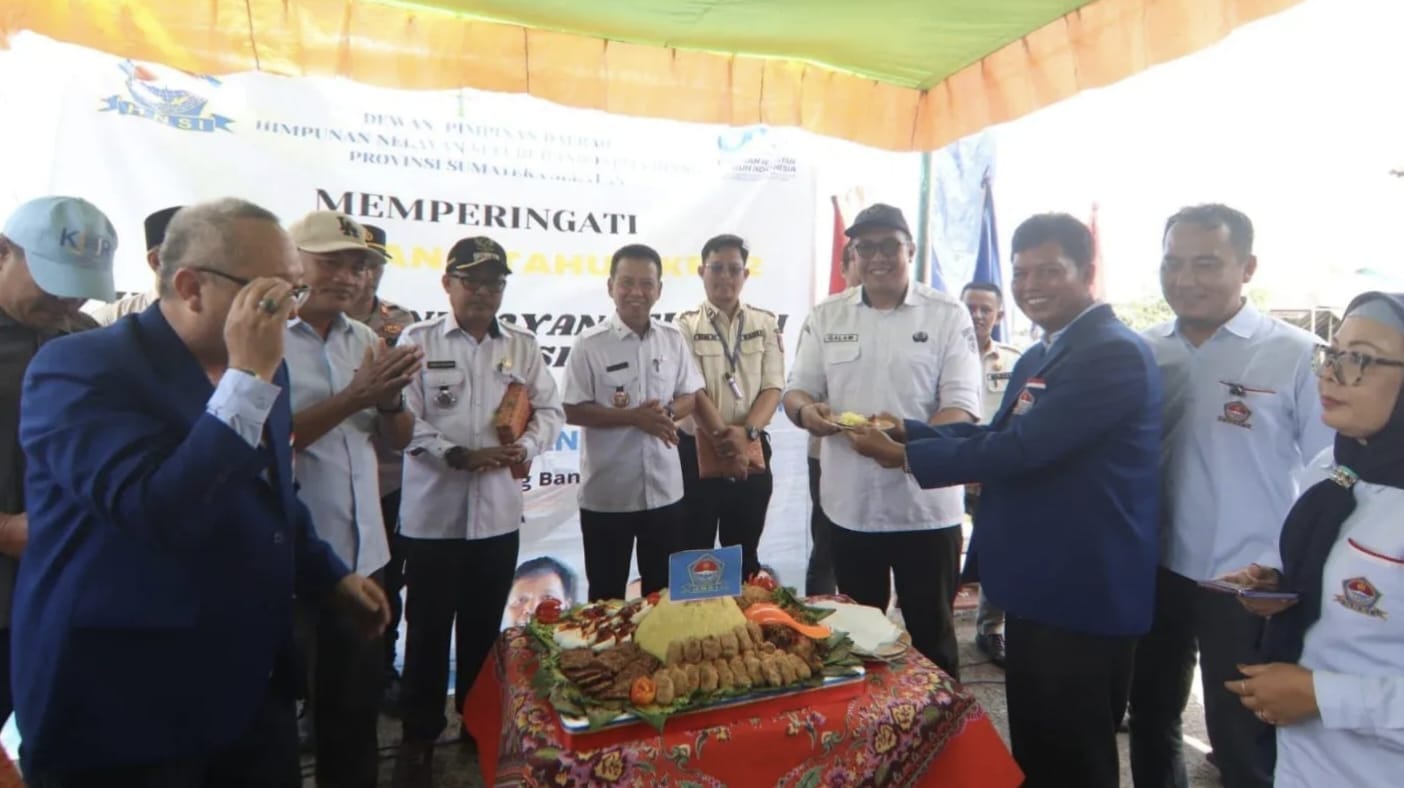 Bupati Banyuasin Askolani diwakili oleh Kepala Dinas Perikanan Banyuasin Septi Fitri menghadiri peringatan HNSI yang puncak gelarannya dilaksanakan di Dermaga Sungsang, Banyuasin II, Rabu (21/5/25).