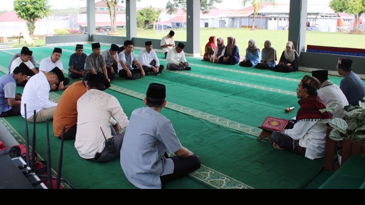 Dengan mendatangkan Ustadz Nur Halim M Pd untuk mengisi ceramah agama semua pegawai khusyu mengikuti.