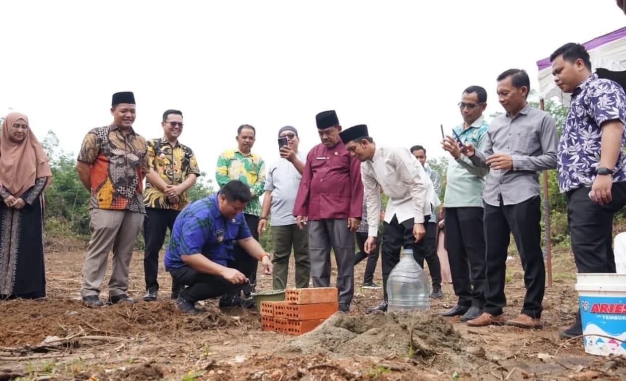 Pj Bupati Banyuasin M Farid diwakili Sekda Erwin Ibrahim peletakan batu pertama pembangunan masjid dan Islamic Boarding School.