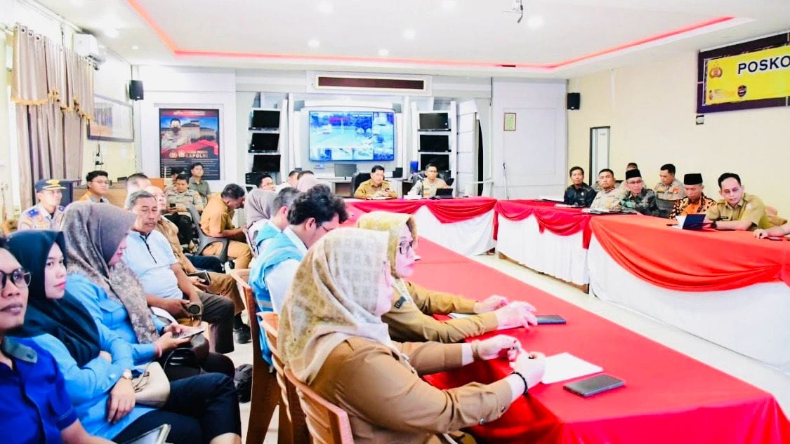 Pangkalan Balai, BukanIsu.Com | Pemerintah Kabupaten Banyuasin bersama jajaran Forkopimda menggelar rapat koordinasi di Gedung Integrated Command Center Polres Banyuasin, Selasa (3/3/2026).