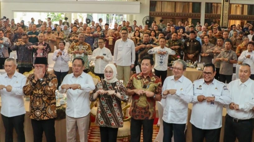 Palembang – Menteri Perhubungan RI Dudy Purwagandhi bersama Wakil Menteri Investasi dan Hilirisasi RI Todotua Pasaribu, Gubernur Sumatera Selatan Herman Deru dan Wakil Gubernur Cik Ujang hadiri Penandatanganan Nota Kesepahaman Percepatan Pembangunan Pelabuhan Tanjung Carat Sumatera Selatan di Griya Agung Palembang, Jumat (31/10/25).