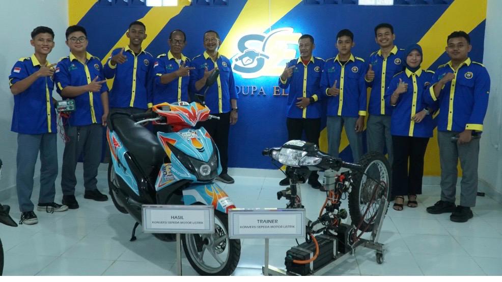 Bengkel konversi ini menjadi ruang bagi generasi muda untuk mempelajari dan menguasai teknologi konversi motor berbahan bakar minyak menjadi motor listrik.