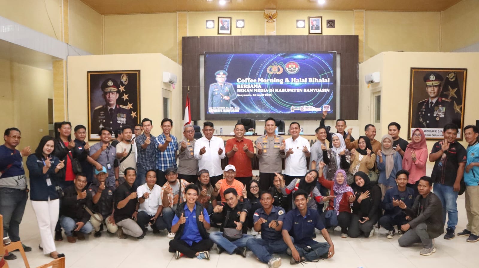Pererat silaturahmi Polres Banyuasin Halal Bihalal dengan puluhan wartawan yang bertugas di kabupaten Banyuasin di aula Sanika Satyawada Mapolres, Rabu (30/4/25).