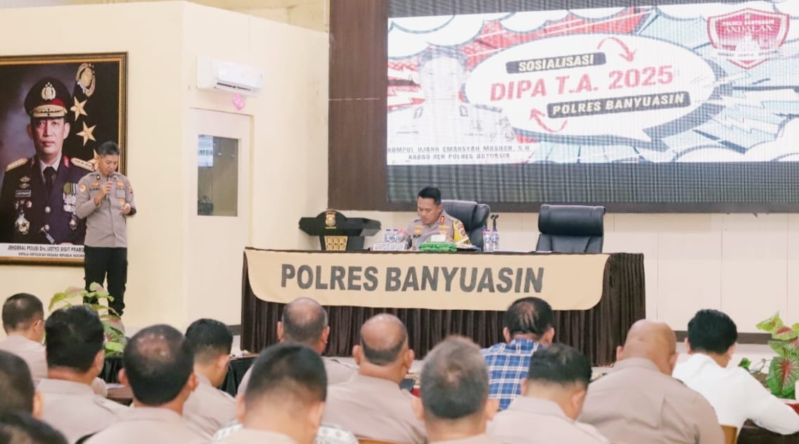 Bukan Isu – TRANSPARANS, Polres Banyuasin menggelar Sosialisasi anggaran DIPA RKA-KL dan Penandatanganan Pakta Integritas TA 2025.