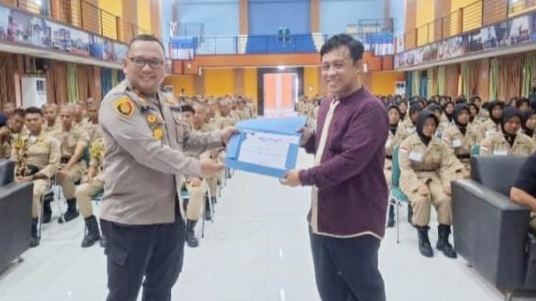 Banyuasin – Sebanyak 400 calon mahasiswa Poltektrans SDP Palembang angkatan XXXVI mendapatkan kuliah umum dari Polsek Mariana Polres Banyuasin di Aula Poltektrans SDP Palembang.