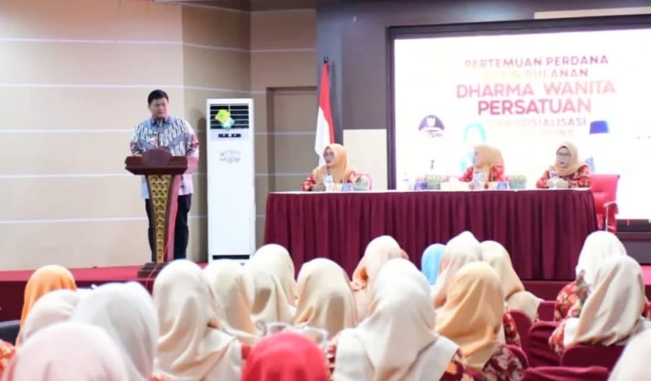 Bukan Isu – Dharma Wanita Persatuan (DWP) Kabupaten Banyuasin menggelar pertemuan perdana arisan rutin bulanan sekaligus sosialisasi E – Reporting, Kamis (30/1).
