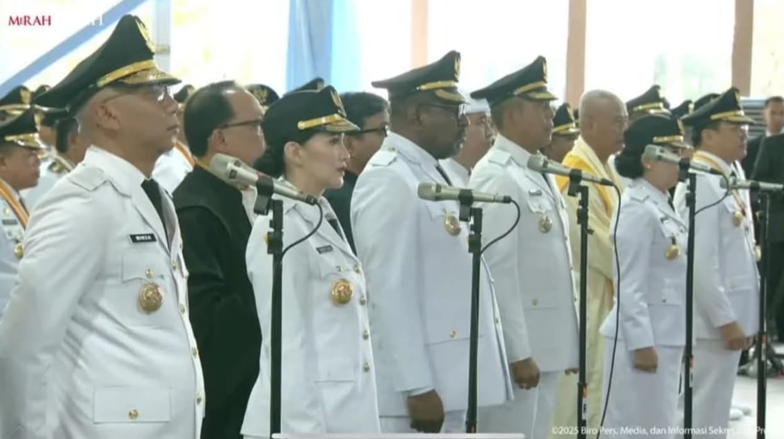 Dalam pidatonya Presiden Prabowo mengatakan ini merupakan momen bersejarah karena kali pertamanya Presiden melantik kepala daerah secara serentak.