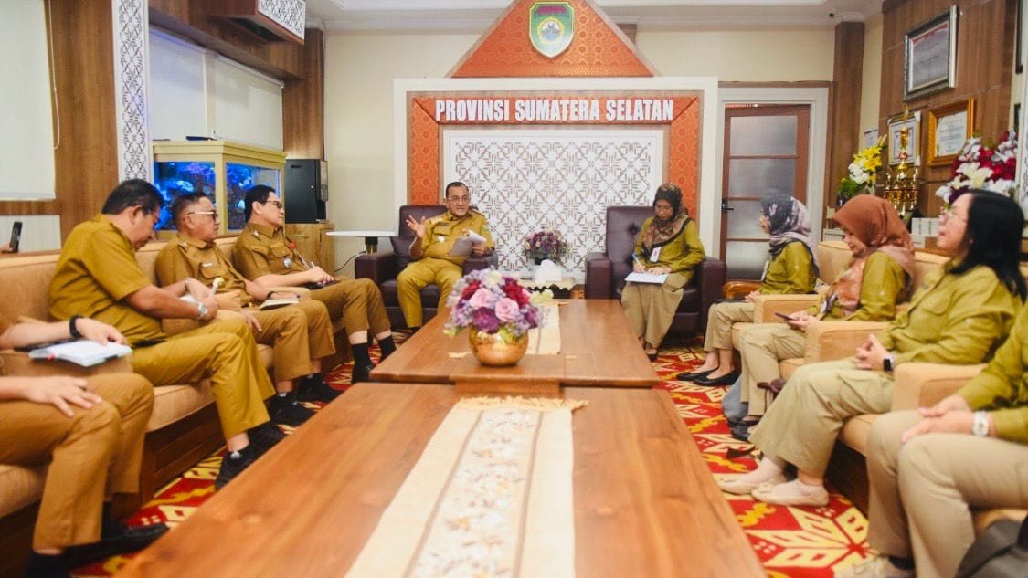 Palembang, BukanIsu.Com | Sekretaris Daerah (Sekda) Provinsi Sumatera Selatan (Sumsel) Dr. Drs. H. Edward Candra M.H menerima audiensi Kepala Balai Besar Pengawas Obat dan Makanan (BBPOM) Palembang dalam rangka penguatan dukungan dan kolaborasi pemerintah daerah terhadap pelaksanaan program keamanan pangan di wilayah Sumsel berlangsung di Palembang, Selasa (10/3/2026).