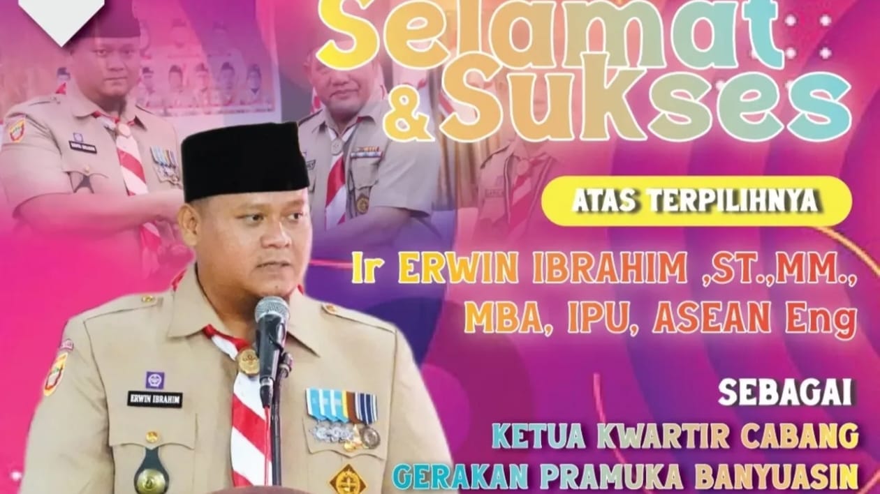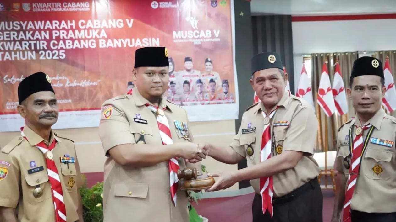 Sekretaris Daerah Banyuasin Erwin Ibrahim resmi jabat Ketua Kwartir Pramuka Kabupaten Banyuasin 2025, pelantikan berlangsung di Auditorium Pemkab Banyuasin, Kamis (03/7/25).