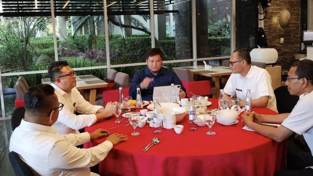 Hari ini Sekretaris Daerah Banyuasin Erwin Ibrahim rapat bersama PDAM Tirta Betuah Banyuasin dan PT Tirta Sriwijaya Maju (PT TSM) Perseroda Provinsi Sumatera Selatan berlangsung di hotel Novotel Palembang, Rabu (30/4/25).