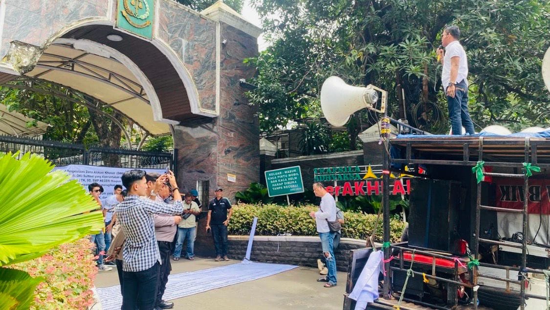 Jakarta, bukanisu.com – Puluhan massa yang tergabung dalam lembaga Suara Informasi Rakyat Sriwijaya (SIRA) dan Pemerhati Situasi Terkini (PST) menggelar aksi damai di halaman kantor Kejaksaan Agung RI, Selasa (24/2/2026)