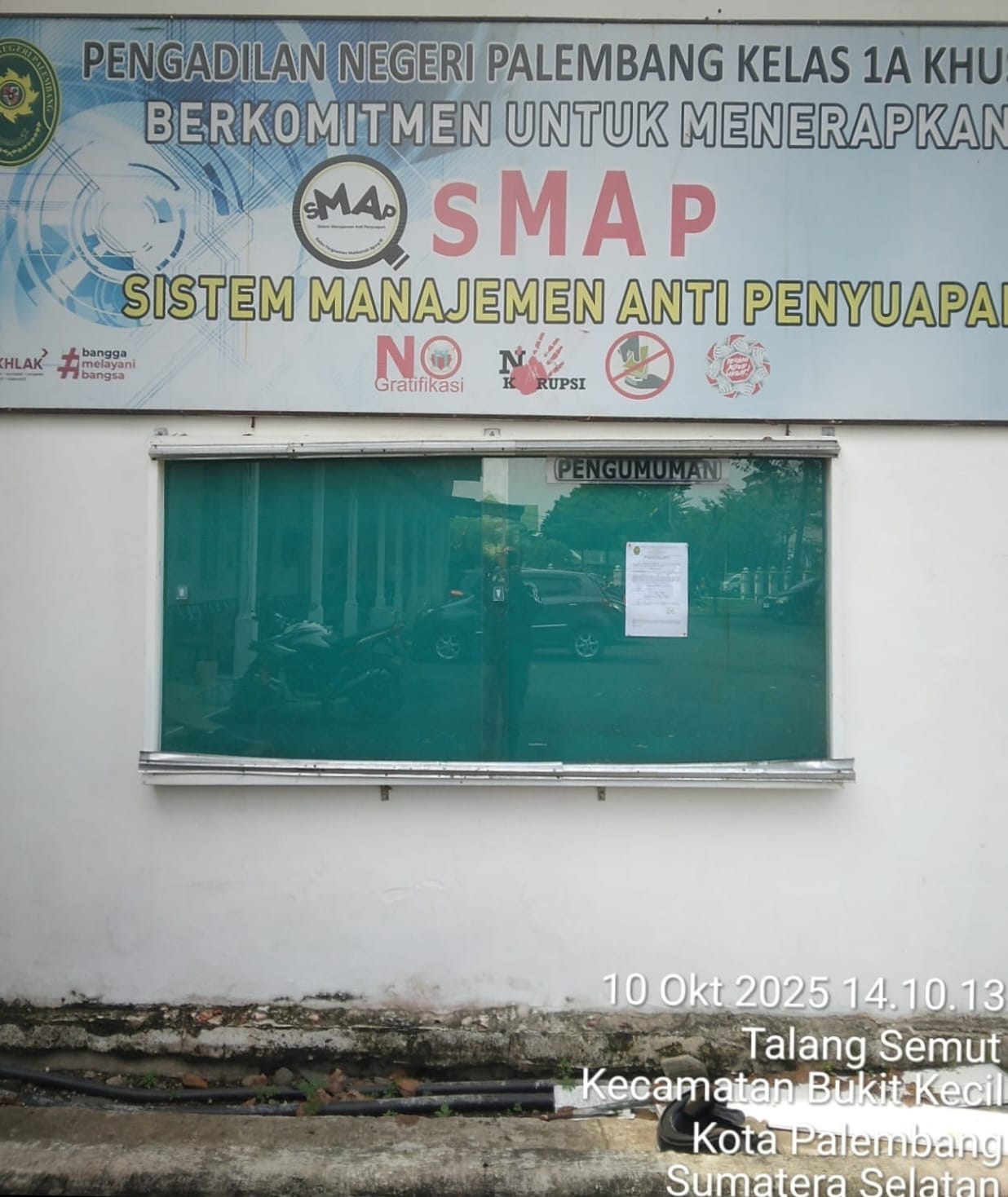 Foto : Papan Pengumuman Tilang di PN Palembang