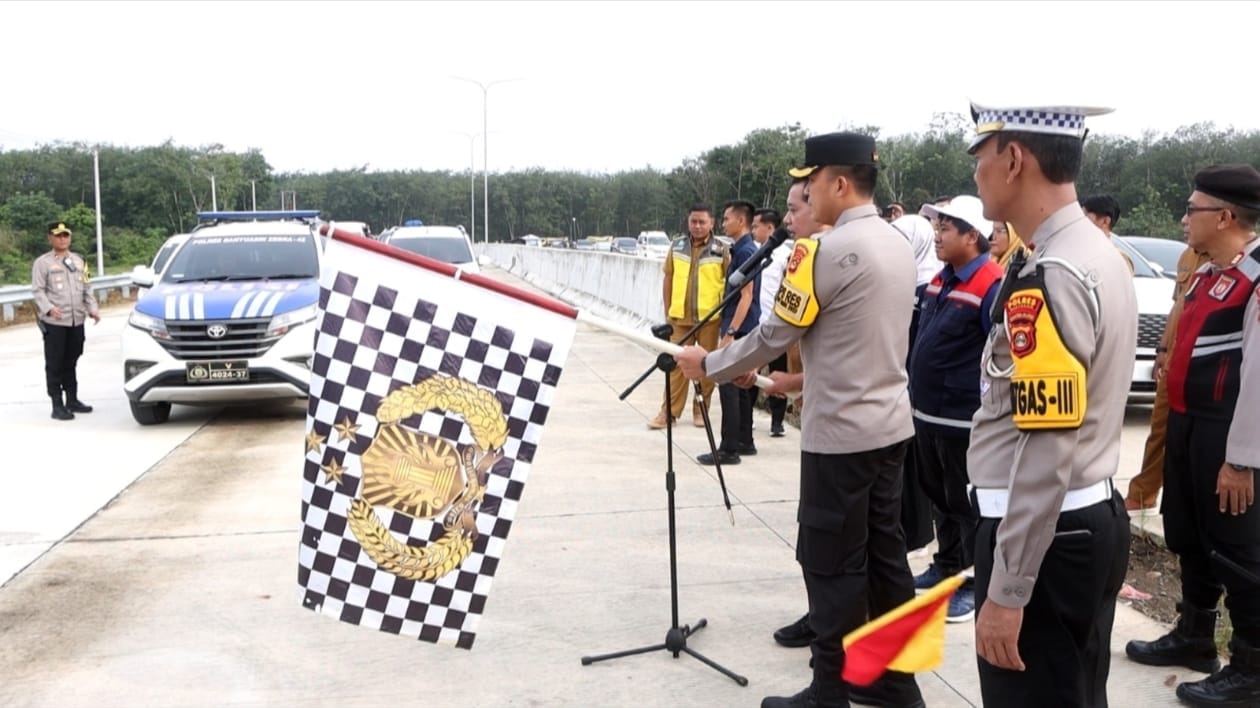 Dalam rangka memastikan kelancaran arus mudik lebaran 1446 H/tahun 2025, Bupati Banyuasin Dr H. Askolani SH MH bersama Kapolres Banyuasin AKBP Ruri Praswoto SH SIK MIK meninjau Jalan Tol Musi Landas kecamatan Talang Kelapa, Senin (24/3/25).