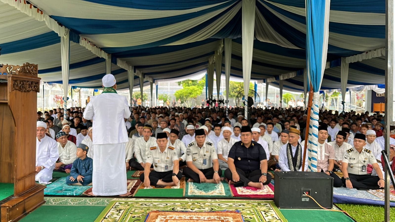 Kegiatan yang berlangsung di lapangan Lapas ini diikuti oleh para petugas serta 1.164 warga binaan dengan tertib dan penuh kekhusyukan.